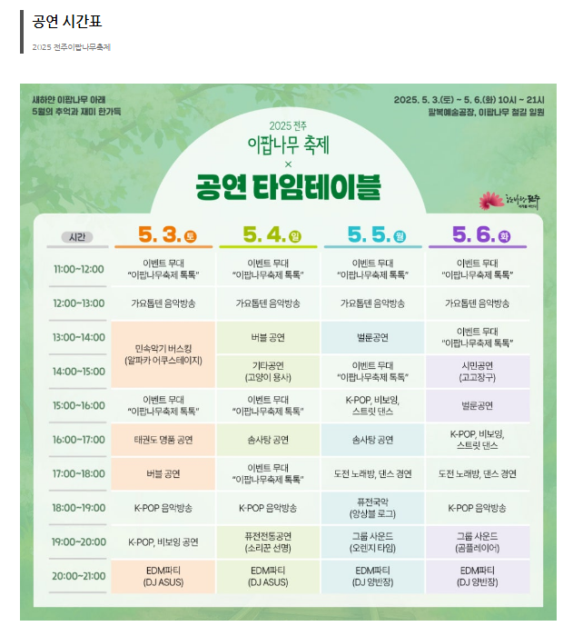 전주 이팝나무 축제 구성표